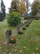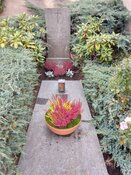 Die ersten Nachtfröste und die ganze sommerliche Blütenpracht der Gottesaugen auf den Gräbern ist dahin. Die Schalen auf den Soldatengräbern, dem großen Kriegerdenkmal, auf dem Grab der zwei unbekannten Soldaten sowie am Gedenkstein vor dem Friedhof und am Denkmal "Den Opfern des Faschismus" wurden in den letzten Tagen von den Mitgliedern der Freien Wähler Naila mit Besenheide, die für die winterlichen Temperaturen sehr gut geeignet ist, bepflanzt.