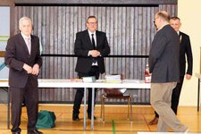 1. Bürgermeister Frank Stumpf hat in der konstituierenden Sitzung des Stadtrates am 06.05.2020 drei ausgeschiedene Stadtratsmitglieder der FW-Fraktion verabschiedet. Hermann Lang, Erwin Schuberth (beide Freie Wählergemeinschaft) und Manfred Zausig (Parteifreie Bürger Marxgrün/Hölle) erhielten die Dankurkunde mit der silbernen Verdienstmedaille der Stadt Naila sowie den Bayerischen Löwen aus Porzellan als Abschiedsgeschenk.